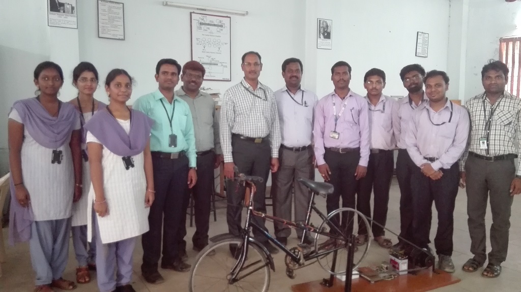 A dynamo is attached to the rear wheel or pedal system of the bicycle. As the rider pedals the bicycle, the wheel rotation drives the dynamo, converting the mechanical energy from pedaling into electrical energy (typically DC output).